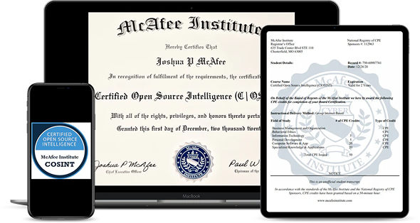 Upon successful completion, you’ll receive a verified digital certification from McAfee Institute. This digital certification can be shared with friends, family, employers, or colleagues and can be featured on your cover letter, resume, and LinkedIn profile to showcase your achievement. Your digital certification will be sent approximately 24-48 business hours after program completion.